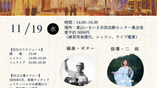 11月19日(水)13時半受付 14:00~16:30 講座+ミニライブ (要予約) 来年長崎ラン...